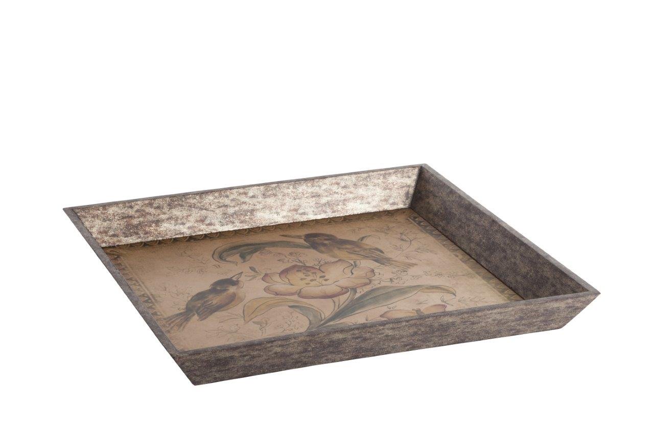 Декоративный поднос Difficile Two прямоугольной формы изготовлен из МДФ. Поднос декорирован рисунком в виде цветка и двух сидящих птичек. В декоре преобладают коричневые и бежевые оттенки. Гармония цвета и рисунка символизирует покой и единение с природой. Несет в себе утилитарную и эстетичекую функцию.