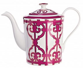 Выполненный из тонкого костяного фарфора, заварочный чайник украшен роскошным орнаментом яркого лилового цвета в стиле модерн moderne. Изящная ручка и утонченный носик придают изделию благородство и стиль.