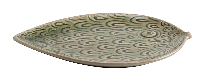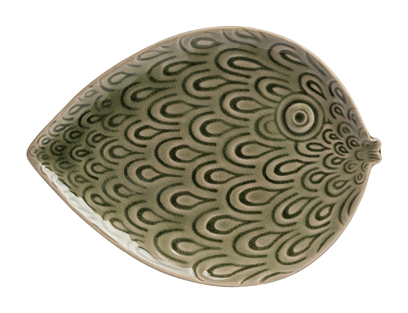 Декоративное блюдо Lobetto — оригинальный предмет декора интерьера. Это эффектное блюдо из грубой керамики, покрытой глазурью, выполненное в форме листа растения и декорированное рисунком перьев павлина, можно использовать как для сервировки, так и для декора интерьера. Такой аксессуар не оставит равнодушным ни одного ценителя уникальных вещей.