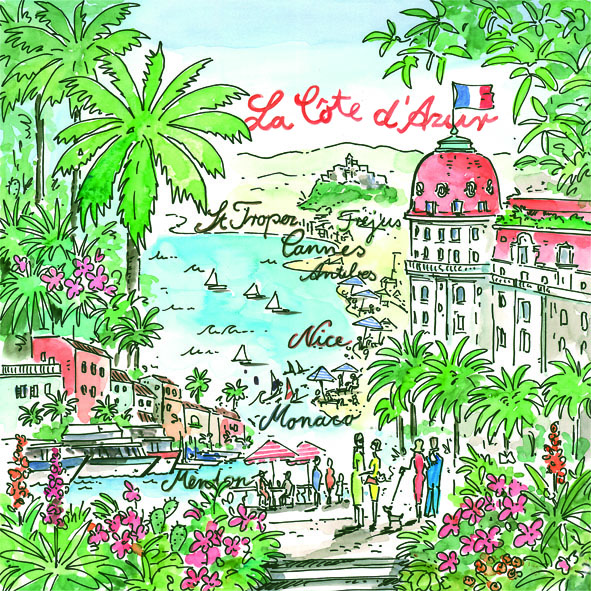 Бумажные салфетки Кот-д`Азур с забавным принтом - напоминание о каникулах во Франции или, как знать, - мотивация скорее туда отправиться!