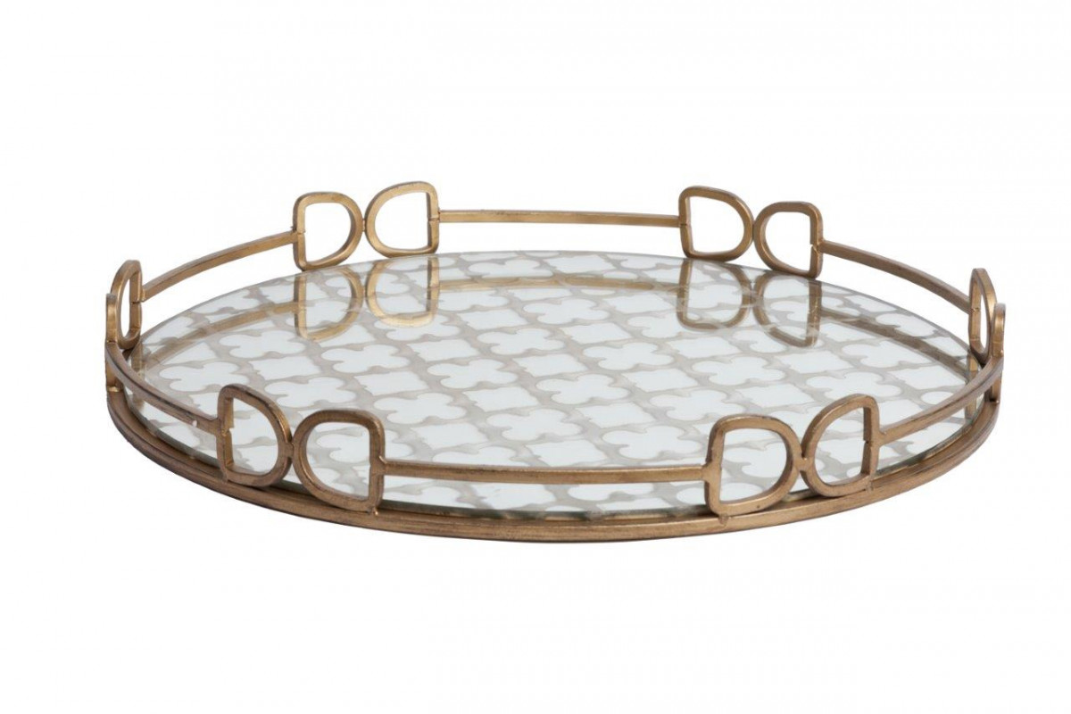 Круглый сервировочный поднос Flerde со стеклянным дном, в красивой металлической оправе золотого цвета, отличается оригинальным и практичным дизайном. Он пригодится для изысканной подачи к столу еды или напитков. Можно использовать как дома, так и в ресторане или кафе.