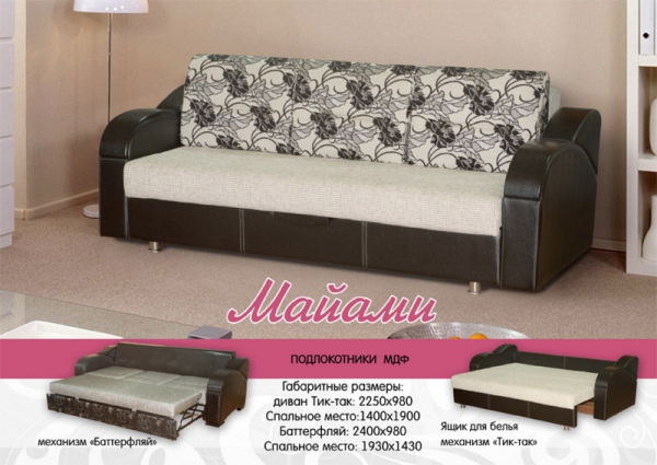 Механизм: Баттерфляй, габариты д*г*в: 2255*1000*950, спальное место: 1900*1300