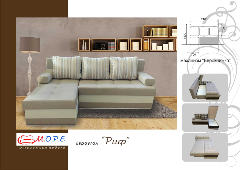 Механизм: Еврокнижка, габариты: 2150*940, спальное место: 1400*1900