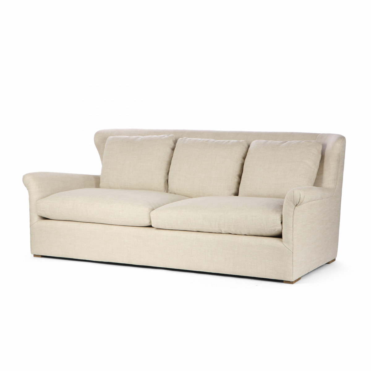 Уютный светлый диван Wing Back раскладной представляет собой дизайнерское творение, которое станет замечательным украшением и главной частью любой гостиной комнаты. Модель оснащена множеством удобных пузатых подушек, в которые так и хочется упасть и насладиться приятным отдыхом за любимой книгой или просмотром интересного фильма.