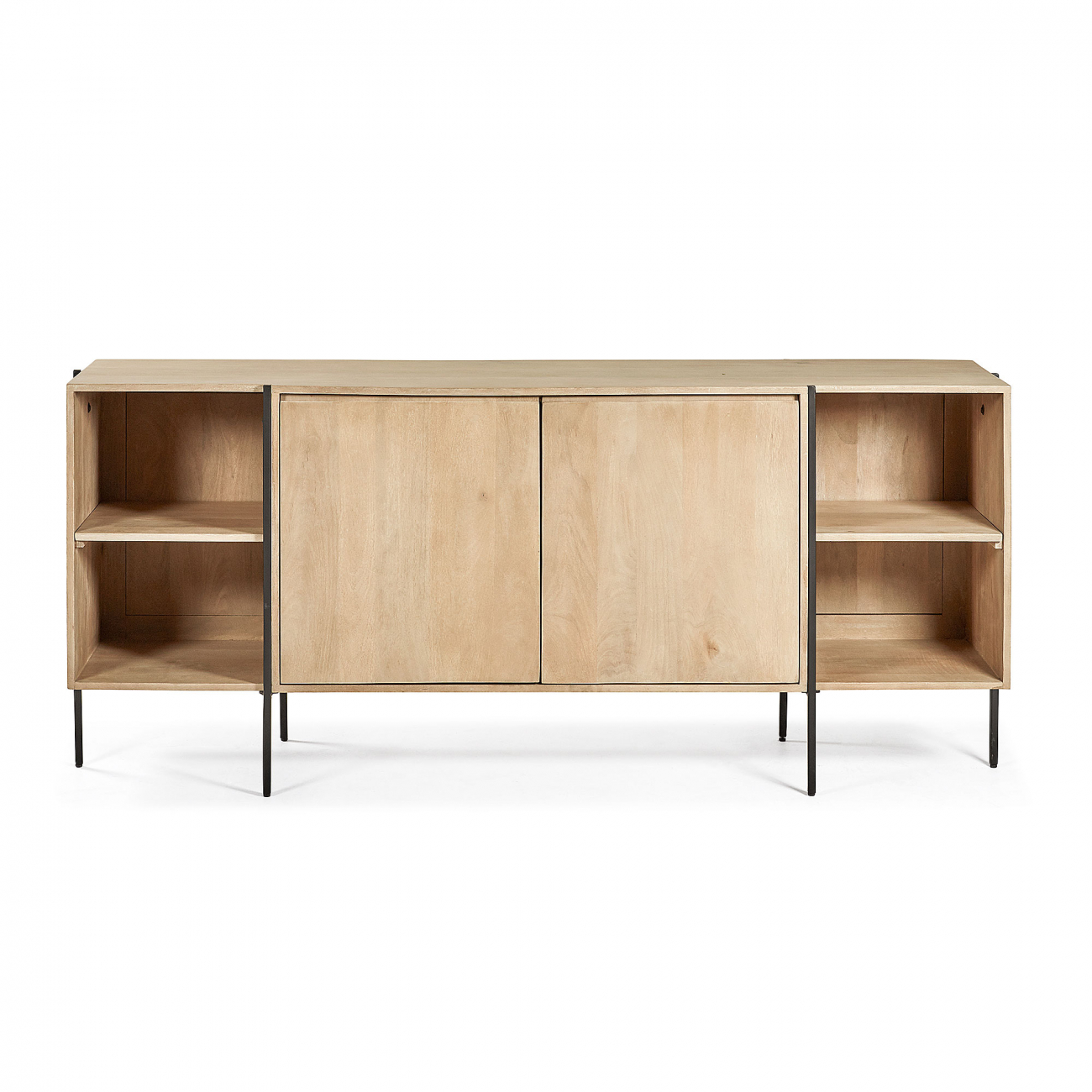 Буфет из твердой древесины манго и металлической структуры с порошковым покрытием.