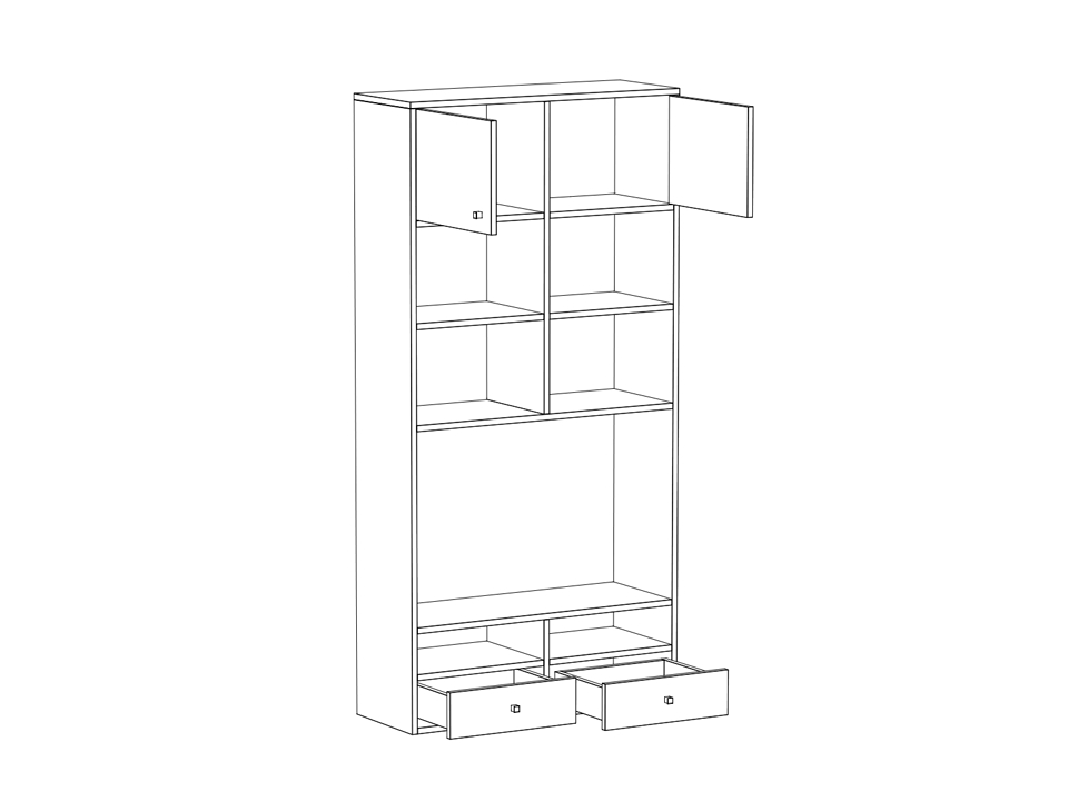Шкаф для телеаппаратуры имеет нишу для установки телевизора, закрытые и открытые полки, выдвижные ящики.
