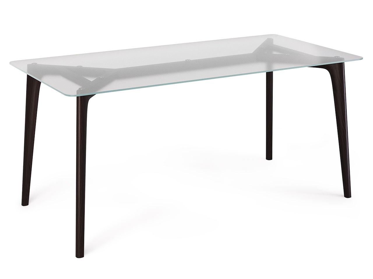 Комфортный обеденный стол с матовой стеклянной столешницей и элегантными овальными ножками из массива дуба. Декоративные стальные крепления с помощью УФ клея прочно удерживают осветленное 8 мм стекло, подчеркивая невесомость конструкции.Особенности.Полированные стальные крепления столешницы и прозрачная УФ склейка деталей обеспечивает максимальную прочность соединения.Столешница с закругленными углами из осветленного матового стекла.Удобная конструкция – больше места для широких кресел.Материалы.Каркас – массив дуба.Столешница – стекло 8мм.Фурнитура – стальные винты.Покрытие – тонировка, матовый лак.