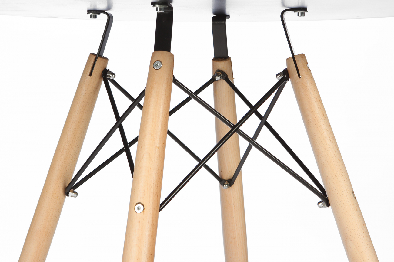 Выполненный в стилистике 60-х годов обеденный стол Eiffel диаметр 70 отвечает требованиям к мебели тех времен. Особенно ценились такие качества мебели, как функциональность и лаконичность. Обязательным элементом считались ножки в данном случае — деревянные, устойчивые и при этом не массивные, которые делали пространство более легким и визуально «прозрачным».