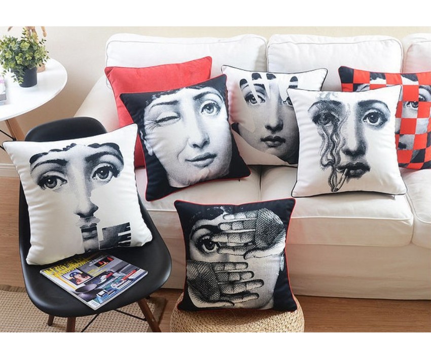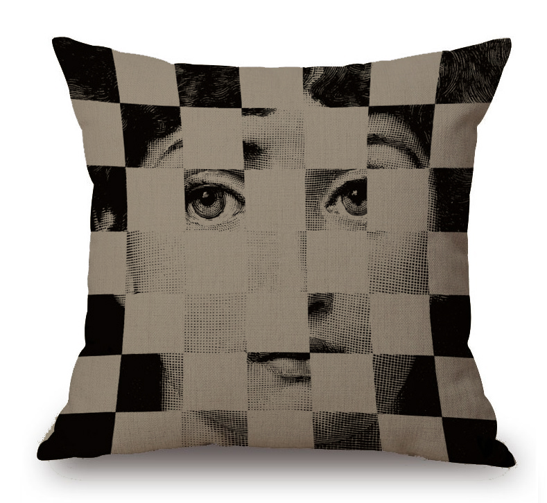 Дизайнер Пьеро Форназетти Piero Fornasetti был одержим прекрасной Линой Кавальери, как Сальвадор Дали своей Галой, а Пикассо — своевольной Дорой Маар. Не зря изображение Лины стало фирменным знаком знаменитого итальянского дизайнера. Эта оригинальная подушка с портретом Лины, дополненным чёрно-белыми квадратами, отчасти напоминает работы Дали и Пикассо, но, в то же время, демонстрирует собственный оригинальный стиль Форназетти и одну из главных тем его творчества.